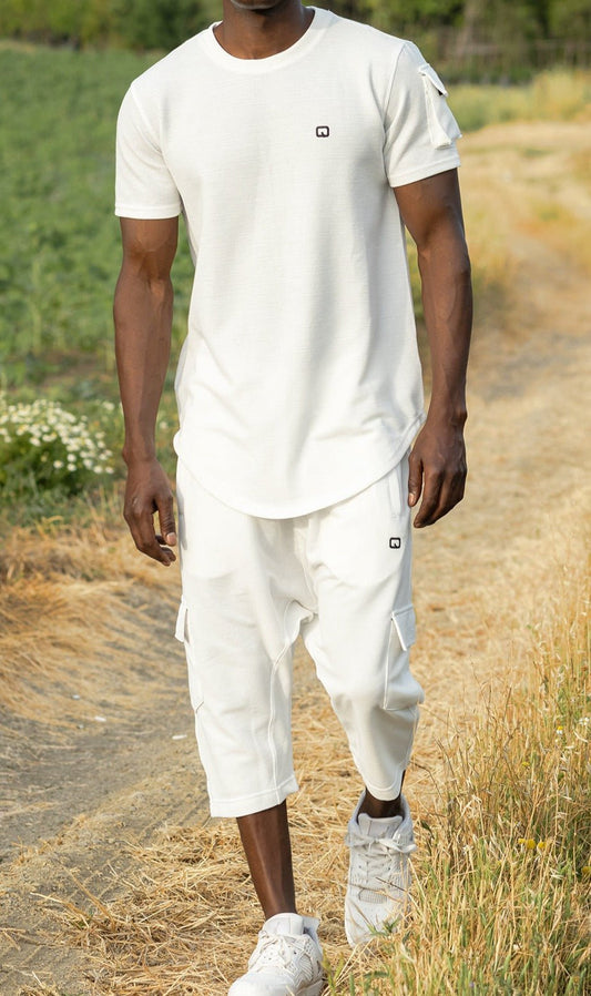QL IGO Relaxed Cargo Shorts and T-Shirt Set in Cream