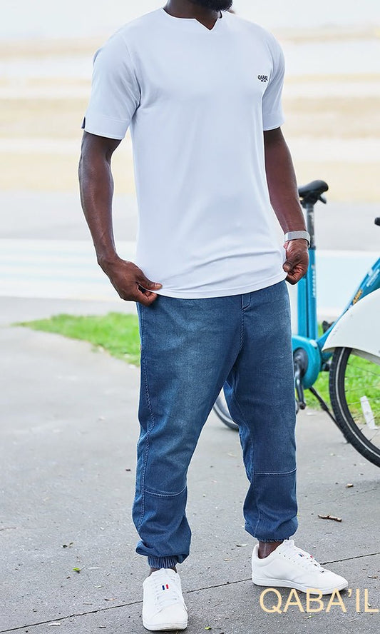QL Relaxed Fit Stretch Cuffed Jeans in Ocean Blue