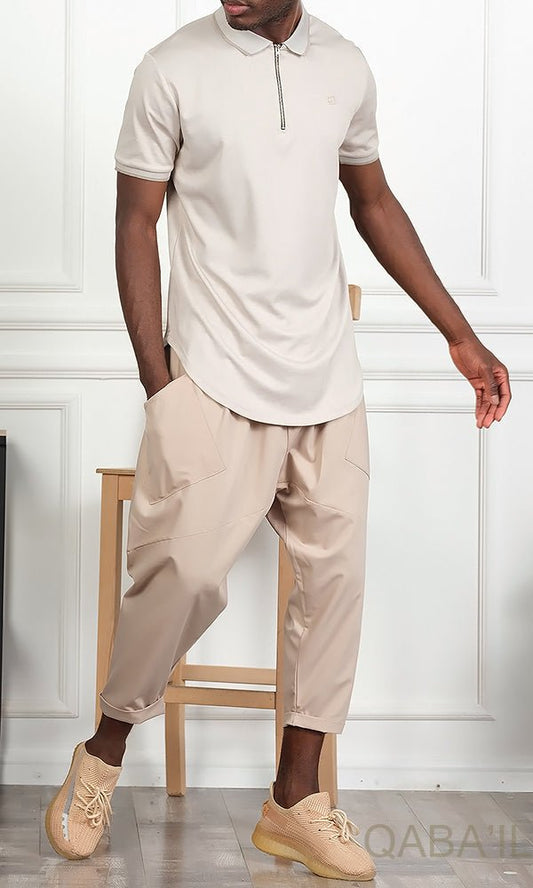 QL Relaxed Polo Zip Up S24 in Almond Green