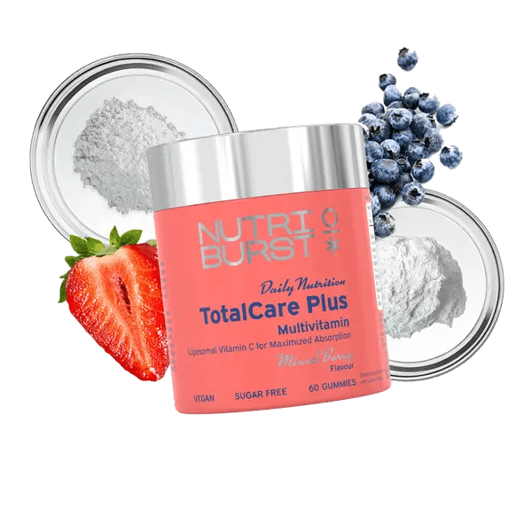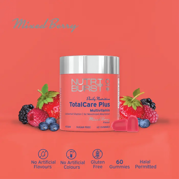 Nutriburst Totalcare Plus Gummies are the ultimate all-in-one multivitamin solution, supporting your immune system, vision, skin, hair, cognitive processes, and more. Designed for individuals aged 5 and above, these delicious mixed berry-flavoured gummies are packed with a potent blend of essential nutrients, including Liposomal Vitamin C, Vitamins D, B6, B12, and Zinc for maximum effectiveness.